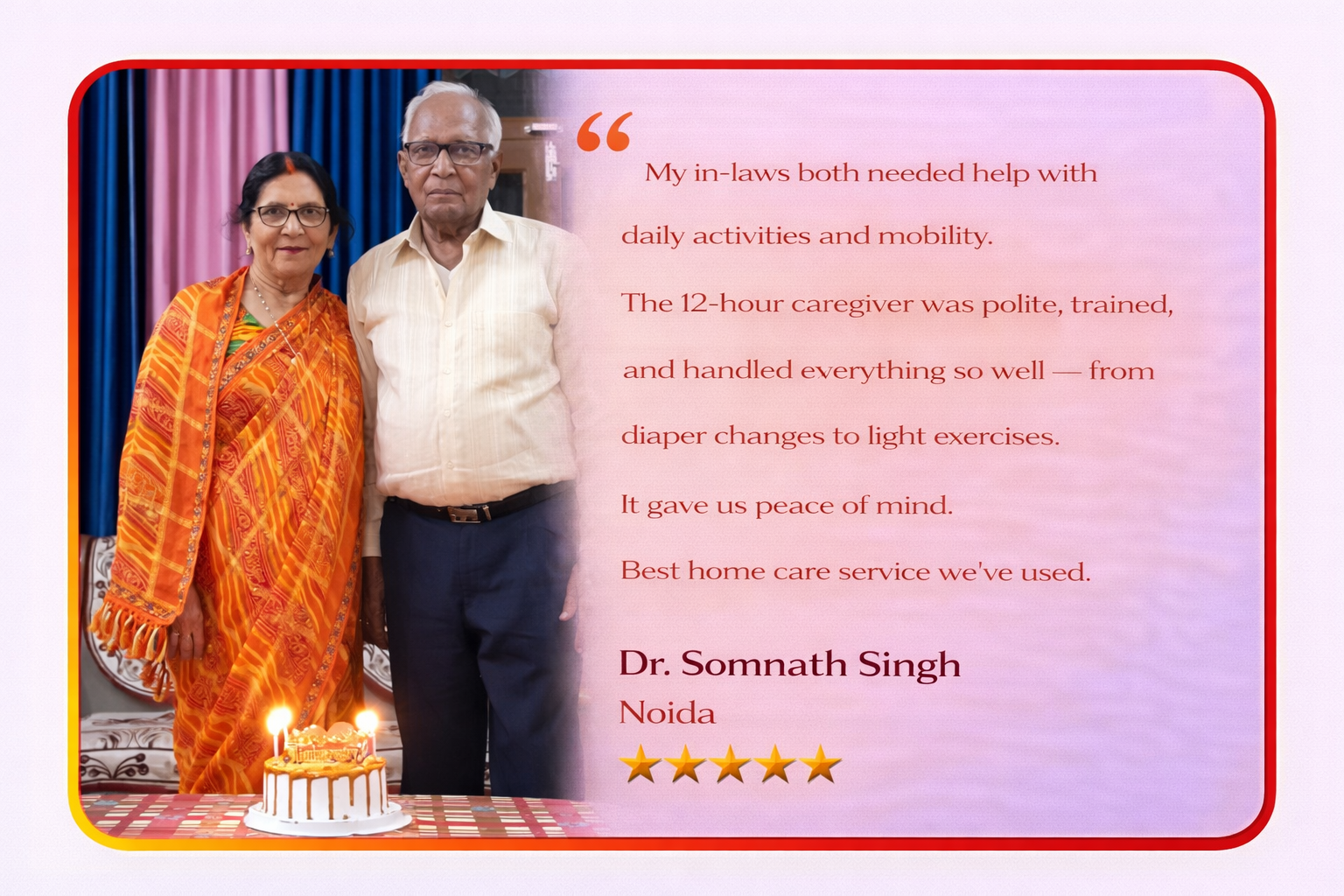 Flexible caregiving — choose 12-hour day/night caregivers or 24-hour full-time attendants for continuous care and family peace of mind.